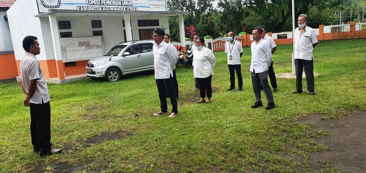 #TemanPemilih, Senin, (17/01/2022), Pekan ke~3 Bulan Januari 2022. Komisi Pemilihan Umum (KPU) Halmahera Utara (HALUT) menggelar Apel Rutin di halaman Kantor KPU HALUT.  Apel dipimpin oleh Kepala Subbagian KUL KPU HALUT,  Bapak Abdul Aziz Tobuku,S.H. dalam paparanya, beliau berpesan kepada seluruh staf agar lebih proaktif dalam mengembangkan diri dan juga menjaga kedisiplinan pada masing-masing subbagian.
